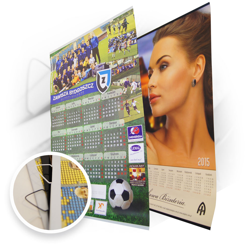 Starannie wykonane, o najwyższej jakości wydruku i na doskonałym papierze ,oprawione metalową listwą z zawieszką. Kalendarze plakatowe na cały rok zawisną na ścianach i z pewnością przykują uwagę wielu osób stając się znakomitą metodą promocji Twojej firmy.